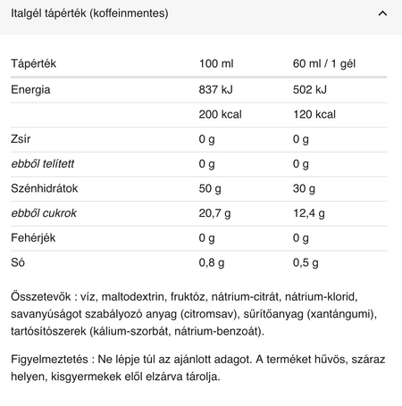 Azonnal használható sportgél, amelyhez vizet adtak. Ez a gél különféle szénhidrátforrásokat tartalmaz, fokozatos felszívódású (2:1 szénhidrát arány). Különböző frissítő ízekben kapható.
